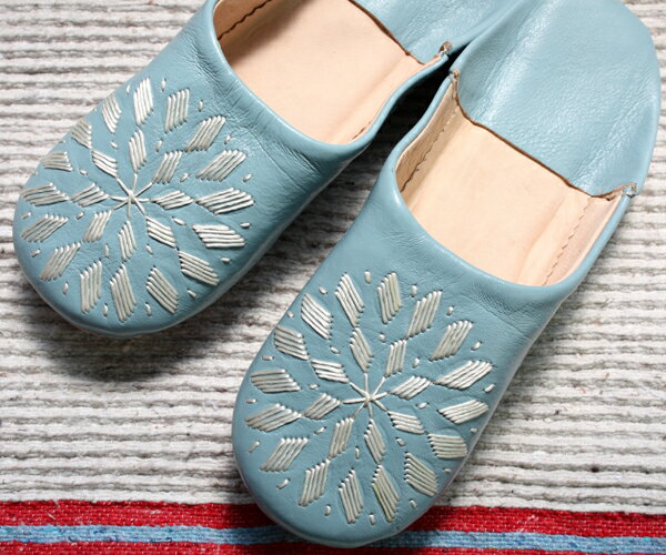 シンプルバブーシュにカラー糸の刺繍がキュート1サイズ:39(約24cm)柔底の室内用。☆ご購入にあたって注意事項☆ 1足のみメール便対応可その他200種類以上